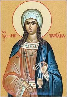 Santa Tatiana fue una mártir cristiana del siglo III en Roma durante el reinado del emperador Alejandro Severo. De acuerdo a la leyenda, fue hija de un servidor público romano quien era secretamente cristiano, educó a su hija en la fe y llegó a ser diaconisa de la iglesia. Esto era peligroso y, un día, el jurista Ulpiano capturó a Tatiana y le forzó a rendir sacrificios a Apolo. Tatiana oró y milagrosamente, un terremoto destruyó la estatua de Apolo y una parte del templo pagano.