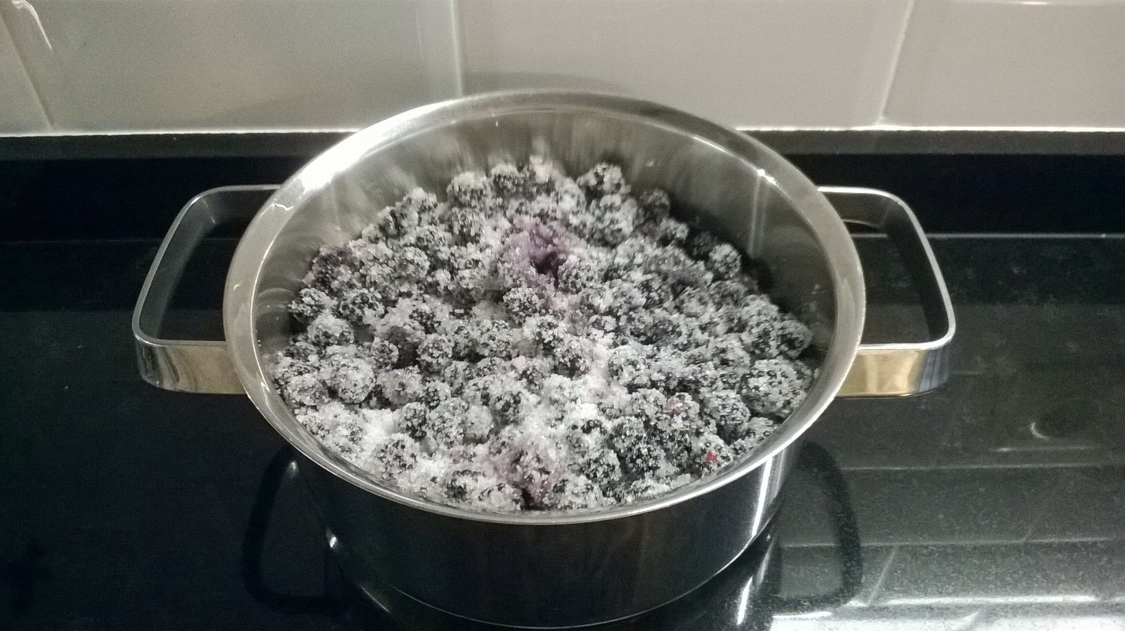 Mezclar en una cazuela las moras, el azúcar y el zumo de un limón y dejar 1 hora en reposo.