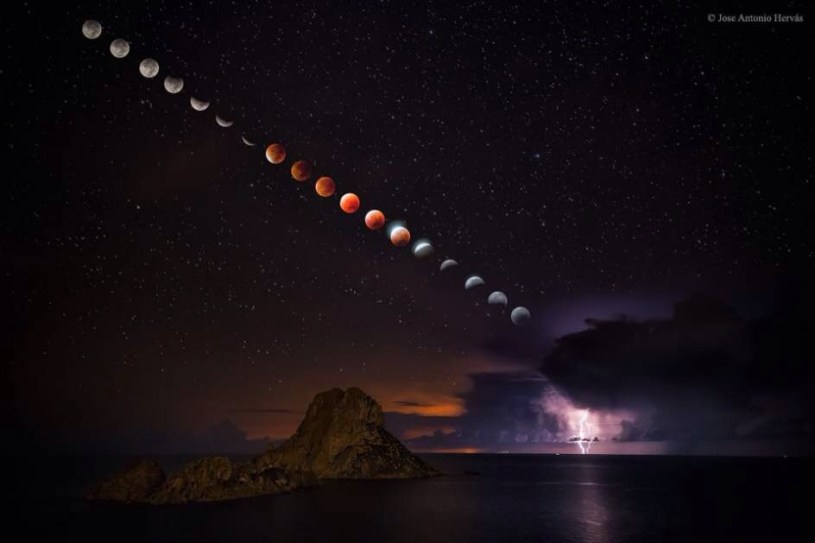 La NASA eligió este martes como imagen del día una fotografía del eclipse de superluna en la madrudaga del lunes realizada por un español, el ibicenco José Antonio Hervás. La imagen lleva por título Supermoon Total Lunar Eclipse and Lightning Storm (Eclipse total de superluna y tormenta eléctrica).