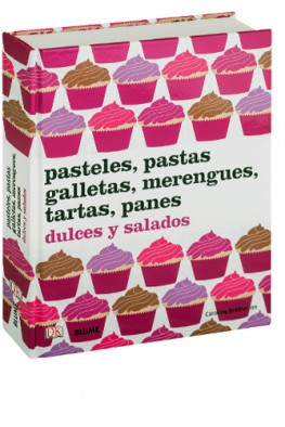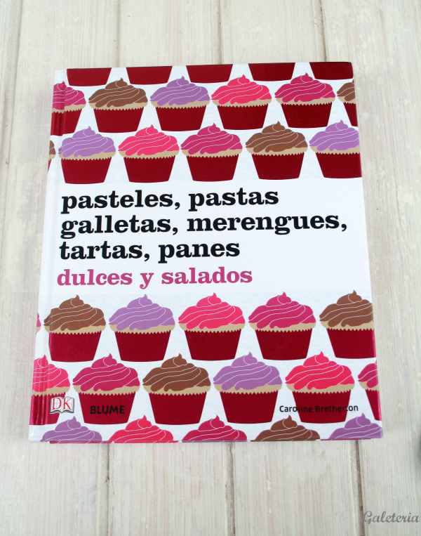 El nombre es largísimo:»Pasteles, pastas, galletas, merengues, tartas, panes dulces y salados» se editó en Londres en 2011 y en España en 2012. Es un libro grandote (544 páginas) así que es fácil de encontrarlo si vas a una librería por sus colores y tu tamaño.