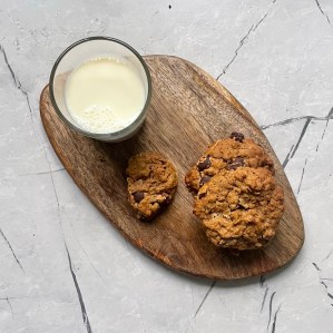 Crujientes por fuera, suaves por dentro y con el toque rústico de la avena, estas galletas con pepitas de chocolate me recuerdan a esos momentos tranquilos en casa, cuando fuera llueve y el olor del horno lo llena todo. Su textura dorada y su sabor delicadamente tostado realzan el chocolate y las convierten en un capricho sencillo, reconfortante y lleno de calma.