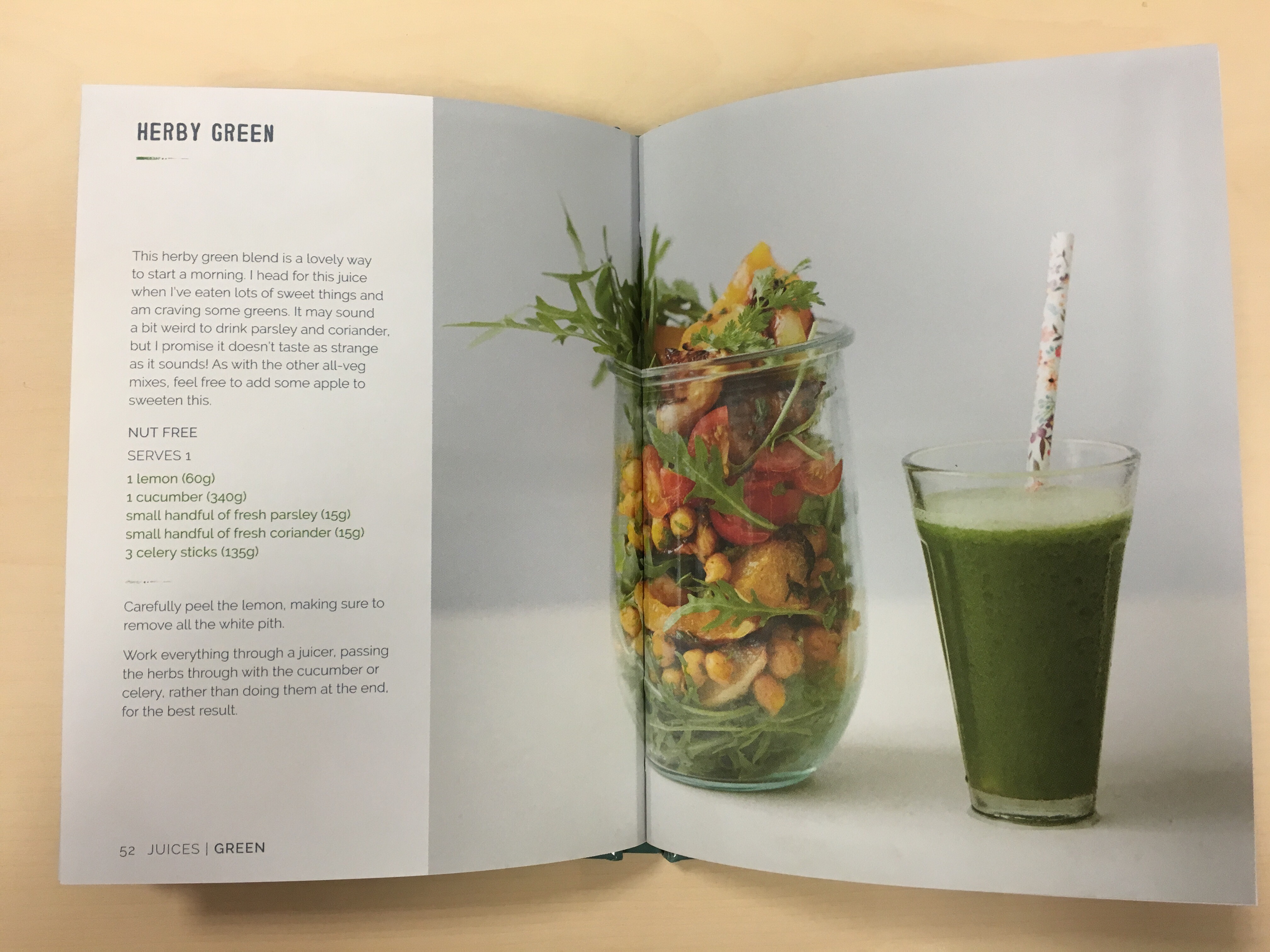 Acaba de sacar, ahora en septiembre, su tercer libro que está dedicado a los smoothies y zumos. En el puedes encontrar originales y sabrosas recetas . Es un libro de tamaño mucho más pequeño que sus libros anteriores con una receta por página acompañada de una gran foto en el que el resultado final entra por los ojos: