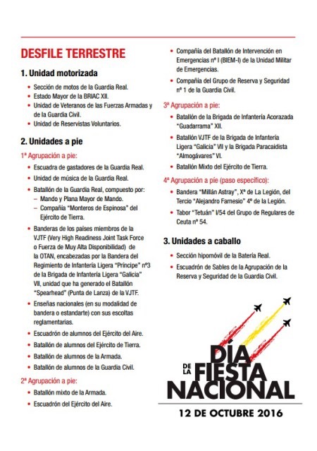 Hoy, día 12 de octubre, es el día de la Fiesta Nacional. Aunque el día ha salido gris y lluvioso eso no ha impedido que haya tenido lugar el tradicional desfile militar con un formato y presupuesto similar al de los últimos años.