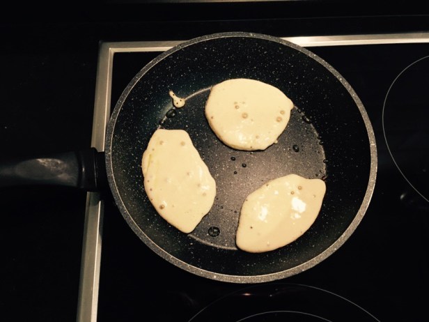 Calienta una sartén con un poco de aceite y vierte en ella unas cucharadas de la mezcla.