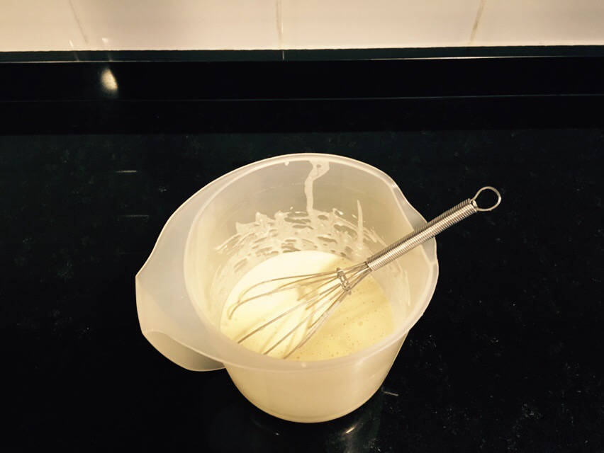 Batir el huevo y añadir la leche.