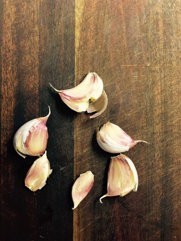 Por otro lado, fríe los ajos sin pelar y solo aplastados. Cuando estén doradores echalos al mortero reservando aceite en la sartén.
