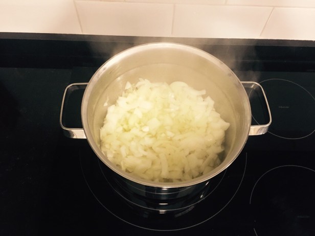 Cortar la cebolla (si puedes ponte unas gafas para que no te salpique en los ojos y no llores. Si lo que quieres es llorar un rato… Entonces, este es tu momento jaja)