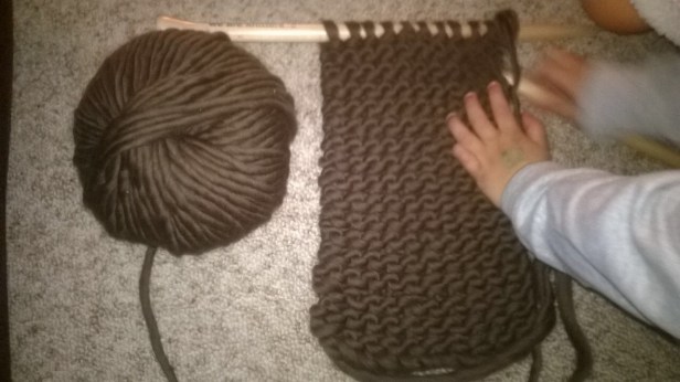 – Se teje en punto de arroz: un punto del derecho y otro del revés, uno del derecho, uno del revés… Así hasta acabar la fila (el último punto será del derecho).