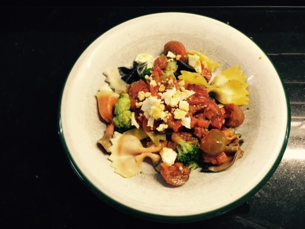 – Repartir la pasta en 7 platos. Repartir el brócoli en los platos.