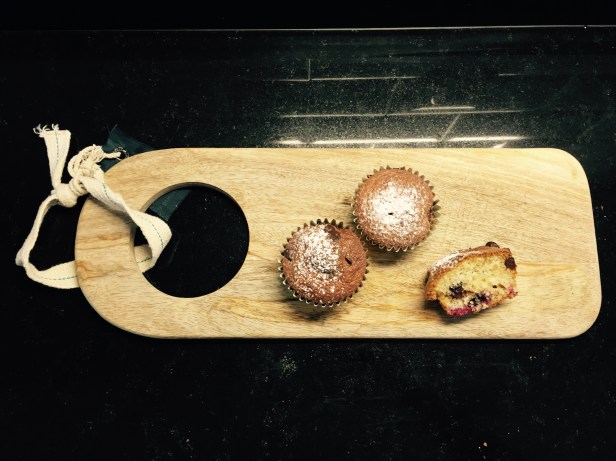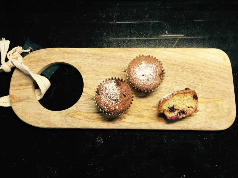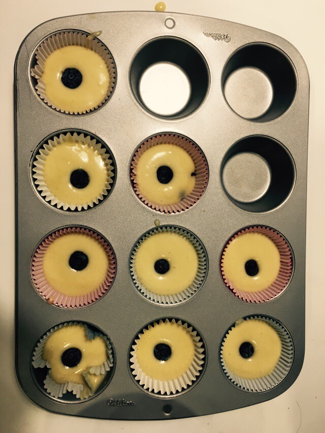 Poner la mezcla y unas pepitas de chocolate y algún arándano por encima