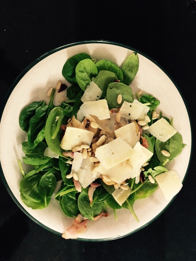 – Poner una base de hojas de espinacas en un plato