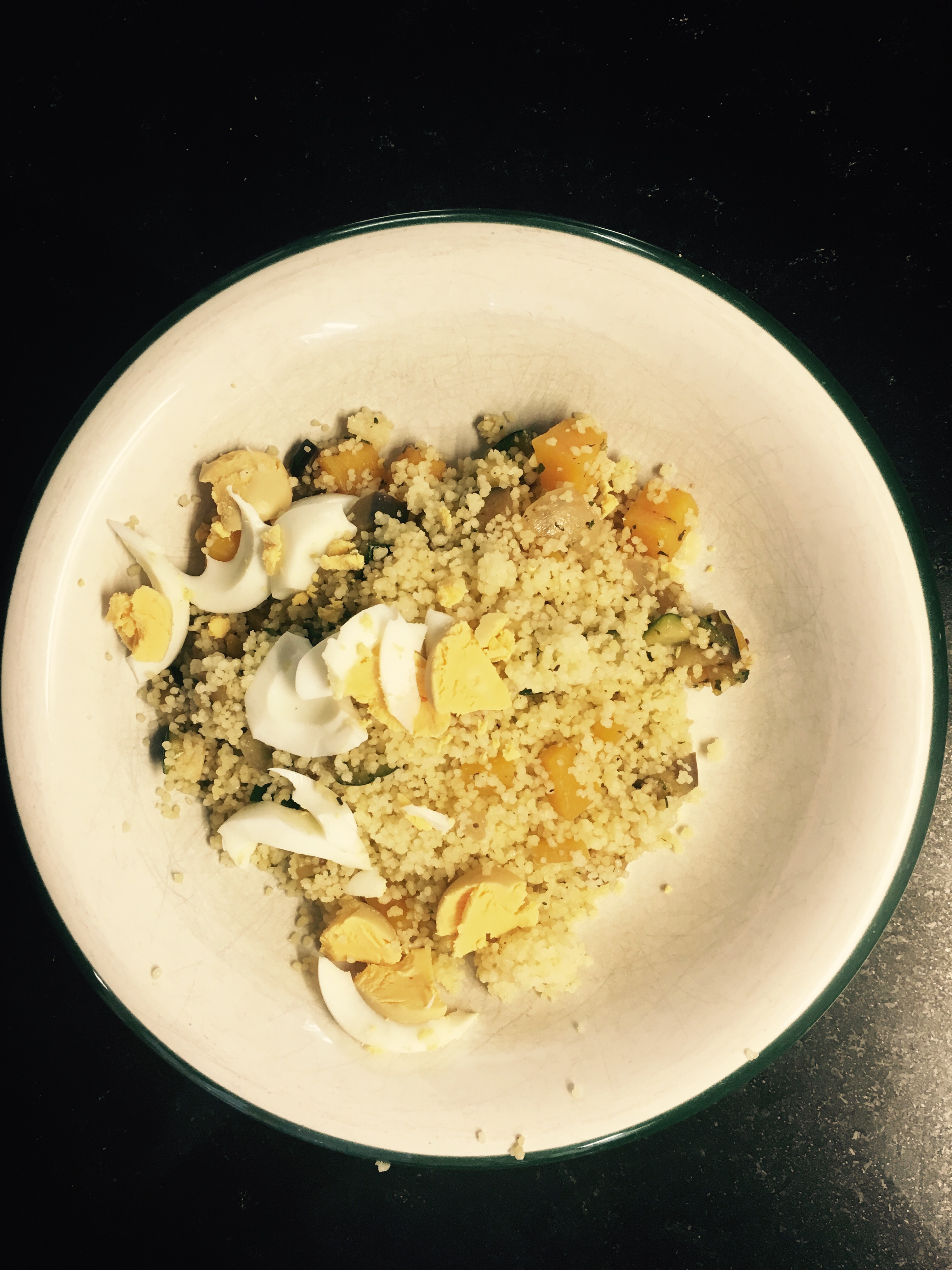 – Cuando tengas las verduras pasadas, mezclar con el cuscus.