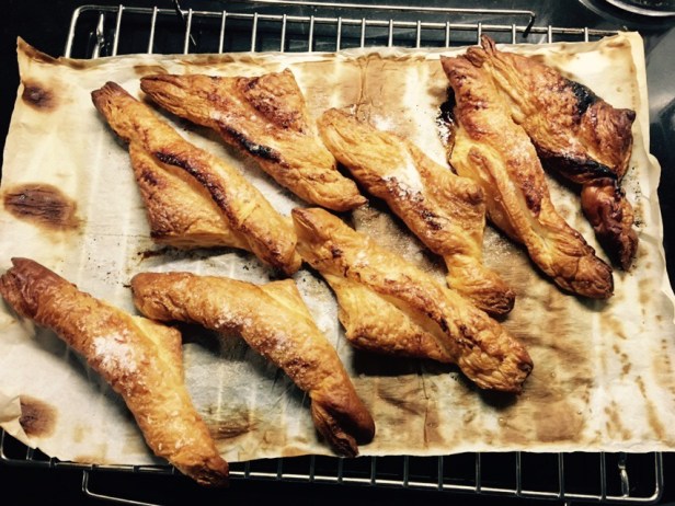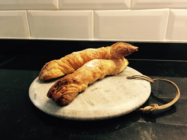 – Poner en cada triángulo unas láminas finas de mantequilla y un poco de azúcar.