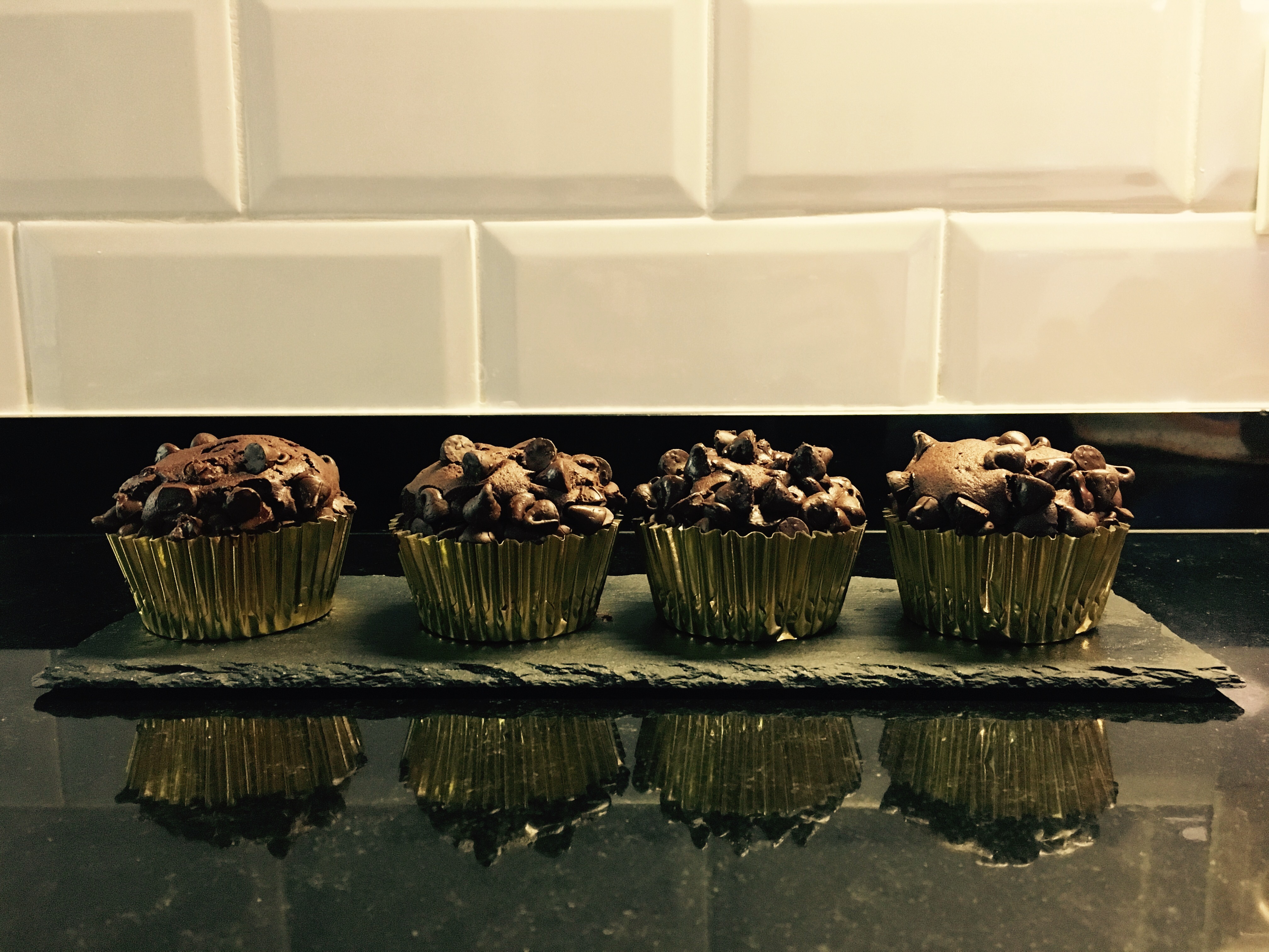La clásica y maravillosa receta del bizcocho, y su versión en bizcocho de chocolate, es perfecta para magdalenas donde la máxima es: «cuanto más pepitas de chocolate mejor»