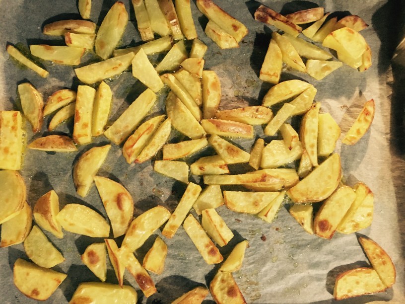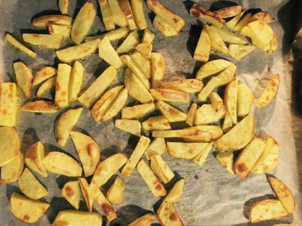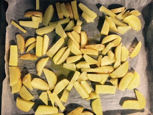 Tengo debilidad por las patatas sin importar el modo en que las cocine y unas patatas acompañando un filete o una hamburguesa …. es todo un manjar. Y para los niños ¡mucho más! Pero como no hay que abusar de los fritos se me ocurrió una forma de hacer unas papatas tipo fritas pero asadas.