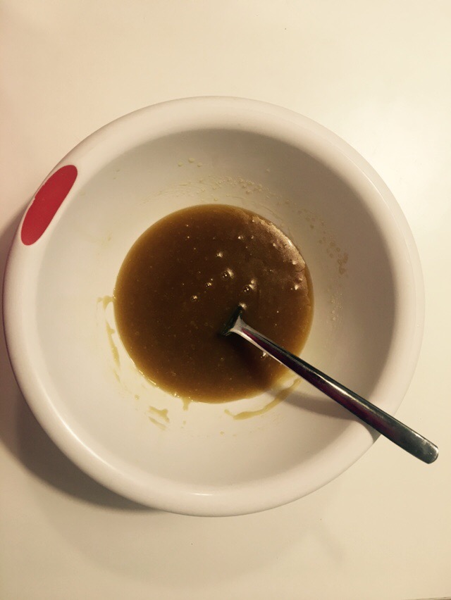 Mezclar en un recipiente los dos tipos de azucar (para la granulada yo puse azucar moreno), con el agua de azahar, el yogourt y el aceite. Mezclar hasta conseguir que todo el aceite se haya mezclado completente cpn el resto de ingredientes