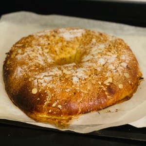 Sacarlo y poner el horno a 180grados. Mientras decorar el Roscón a tu gusto.