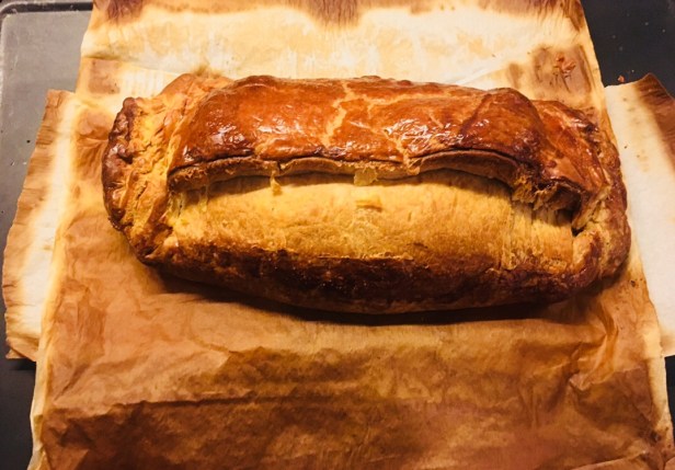 – Cerramos bien el hojaldre y lo pintamos de huevo