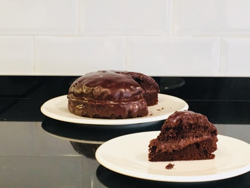 Lo primero que tienes que hacer es el bizcocho. Yo lo hice con la receta de Bizcocho de chocolate y repartí la masa en dos moldes de 18cm: con uno hice la tarta y el otro lo dejé para desayunar.