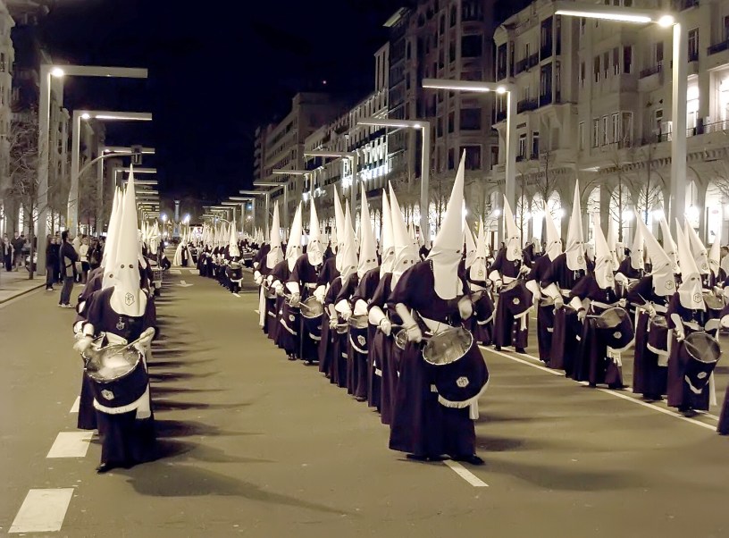 Empezaré por Zaragoza, donde lo más destacado es el sonido de los tambores y bombos que acompañan a los pasos ¡impresionante! Que voy a decir yo que soy de allí… Cada golpe de bombo retumba en tu interior intensificando los sentimientos de respeto, pasión y devoción. Ayer salió en procesión el Descendimiento (a la que pertenezco) en su tradicional salida de martes santo. Procesión muy especial para todos los que la componen y para sus seguidores, lágrima a lágrima, paso a paso… Si os animáis a ir a Zaragoza aquí os dejo información sobre todas las procesiones: