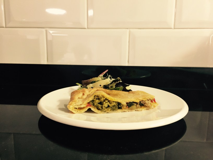La empanada es una receta muy versátil ya que admite casi cualquier cosa. Esta receta la hice para dar salida a unas piezas de verdura que tenia por la nevera y el resultado me encantó. Así que … aquí tenéis. Espero que os guste.
