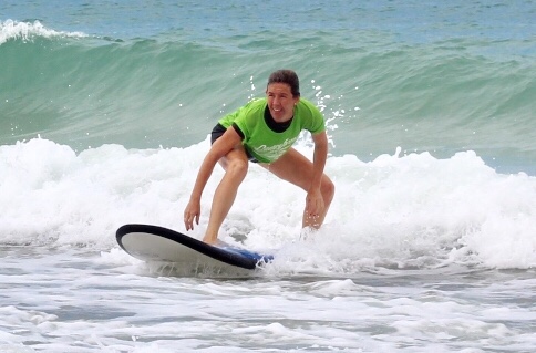 Es miércoles y cada día el surf nos tiene más enganchados. Ahora entro y salgo con mucha más agilidad y paso la zona donde rompen las olas en un plis aunque siento la fuerza de las olas en las piernas y en la tabla.¡Esto sí que es deporte! ¿Habré llegado ya a los 200 intentos? No lo sé pero me siento fenomenal. Mis monitores me animan mucho y estoy encantada.