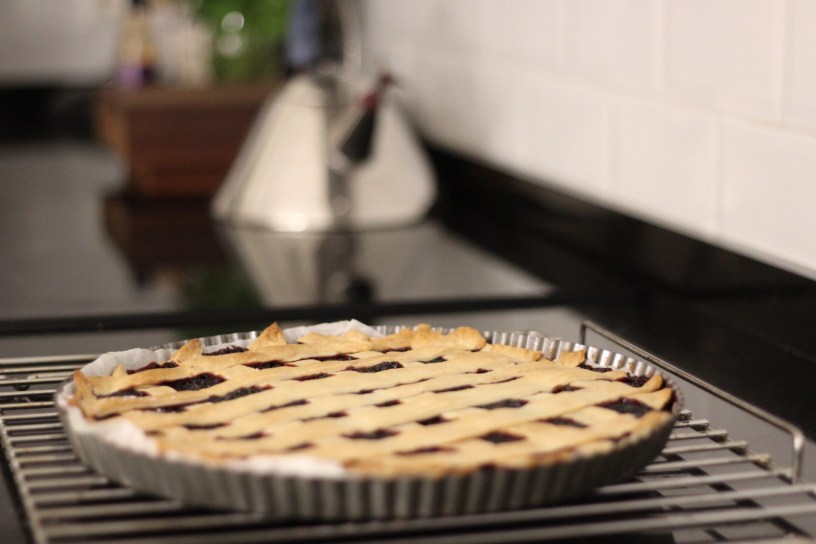 Con la segunda plancha de masa y el resto que has reservado, haz el enrejado de la tarta