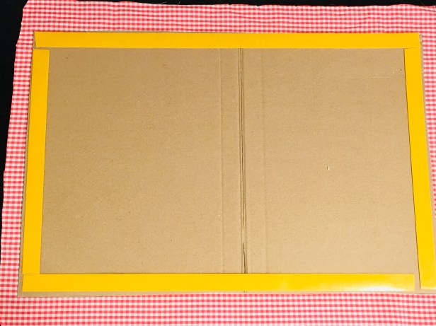 – Quitar un lado de la cinta protectora y pegar la cinta de doble cara alrededor del cartón