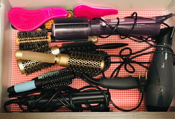 – ¡Y ya puedes llenarlo! En mi caso, como té forrado el fondo de un cajón de un mueble del baño de los niños en el que tenía el secador y los cepillos… y el resultado es este:
