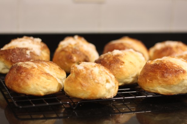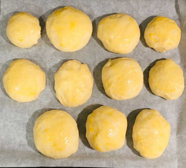 - Deja los bollos sobre el papel de hornear cubiertos con un paño durante una hora y media / dos horas hasta que hayan doblado de nuevo su volumen.
