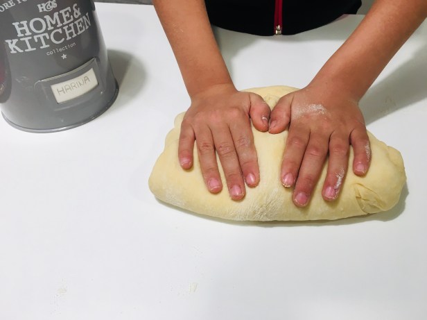 - Hacer una bola y dejarla tapada unos 15′ antes de formar los bollos.