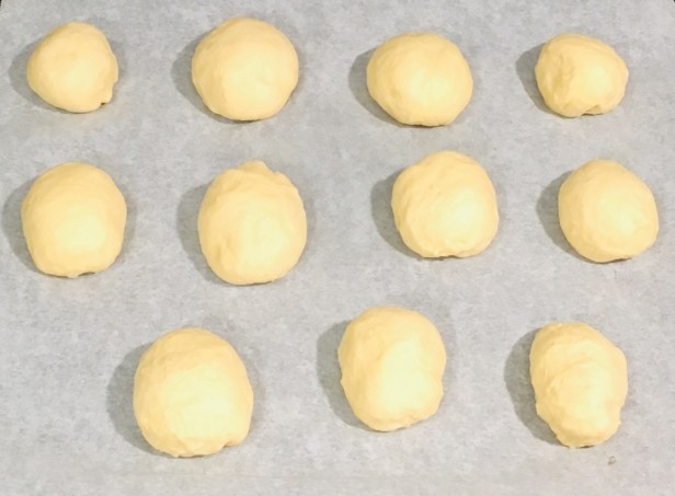 - Dividir la masa en partes iguales para hacer los bollitos.