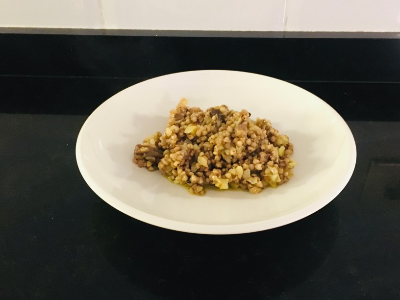 Añadir agua salada y cocer el trigo sarraceno junto con las setas durante unos 15-20 minutos.