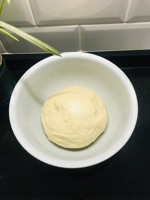 Sacar la masa a la mesa previamente aceitada y limpiar el bol para evitar que restos de masa seca se incorporen a la masa. Amasar unos segundos y formar una bola. Volver a ponerlo en el bol untado en aceite y reposar unos 10 minutos.