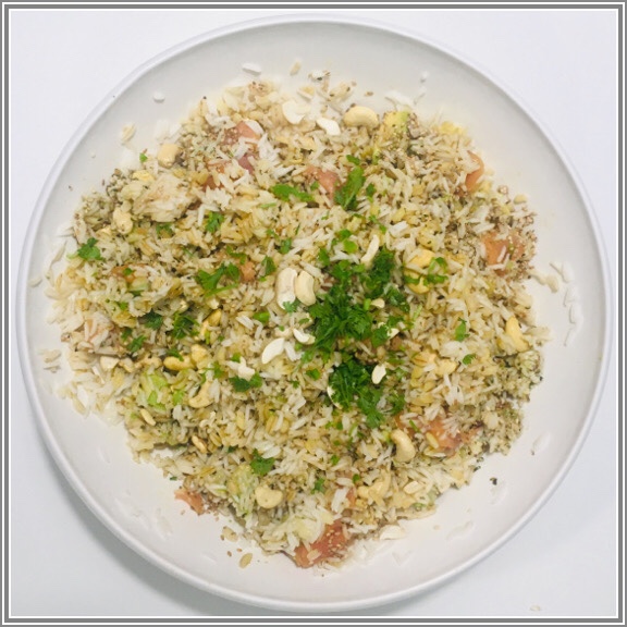 Ensalada de arroz con salmón y aguacate