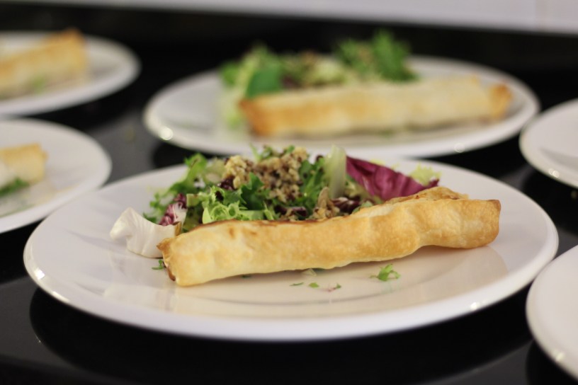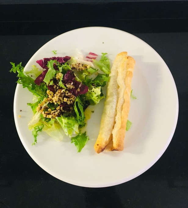 Quiero compartir con todos esta original receta que se me ocurrió el otro día. No tenía mucho tiempo para cocinar así que abrí la nevera y fui sacando cosas que podria combinar. Empecé con ingredientes para hacer una ensalada pero entonces vi una masa de hojaldre y así salió este plato tan rico que ya se ha convertido en uno de los favoritos casa. Ajusta la ensalada y personalízala a los gustos que tengáis en casa y el éxito está asegurado.