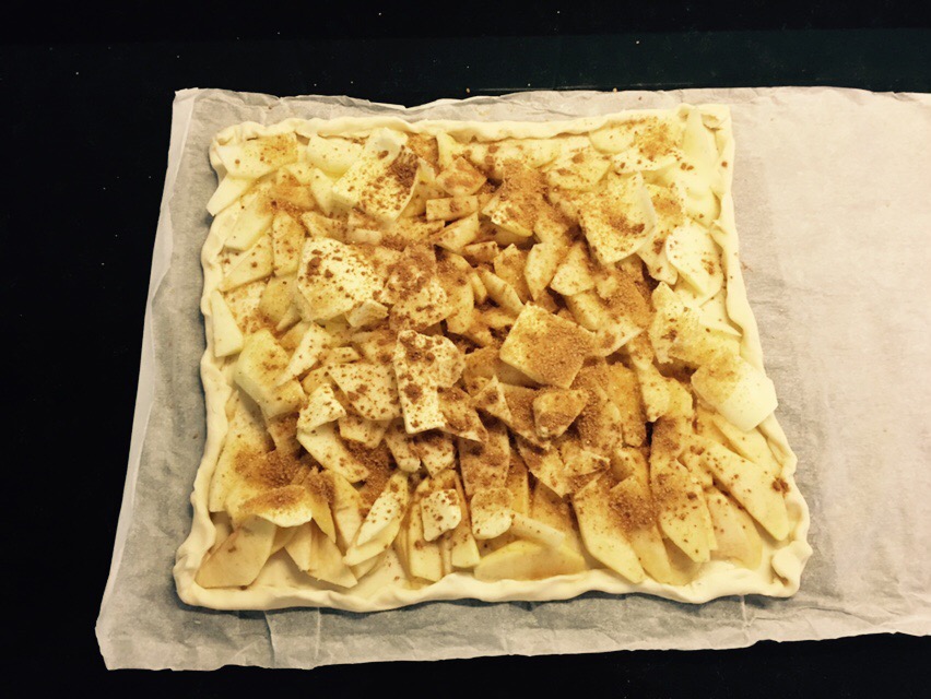 - Poner sobre la masa de hojaldre estirado