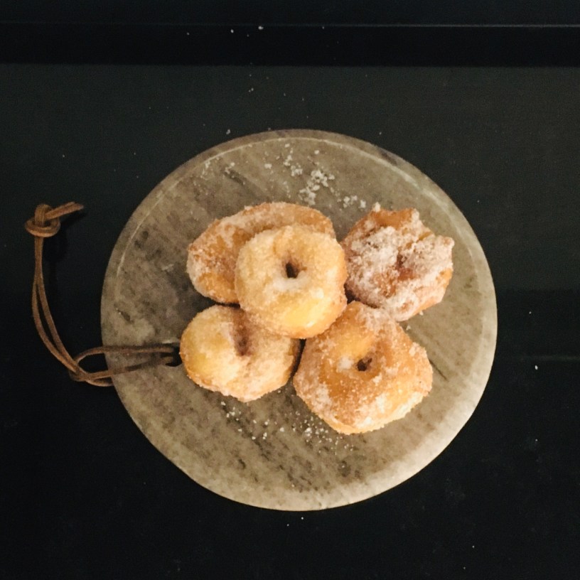 Cuando las saques pásalas por el azúcar y déjalas en una bandeja para que se enfríen (si eres capaz de resistirte a la tentación)