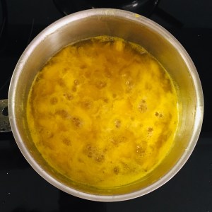 Batir para dejar una mezcla homogénea, poner en un bote que hemos hervido para desinfectarlo previamente, cerrar y dejar enfriar . Si vas a consumirla inmediatamente dejarla en la nevera.