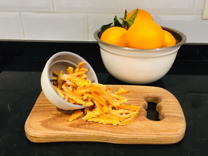 Solíamos tirar las cáscaras de las naranjas y de los limones cuando hacíamos zumo, me imagino que como todo el mundo, hasta que un día, leyendo un artículo, descubrí que tienen muchos beneficios para la salud. La cáscara de naranja, por ejemplo, ayuda a hacer la digestión, es desintoxicarte, favorece el sistema inmunitario… así que empecé a confitarlas y ¡estoy completamente enganchada! Os dejo la receta por si os apetece