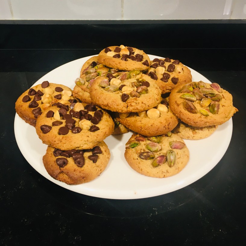 Me encantan estas galletas por su sabor a frutos secos y, como no llevan harina de trigo, las pueden tomar veganos, celiacos… Ademas, los pistachos por encima le dan un puntito de sal que me chifla.