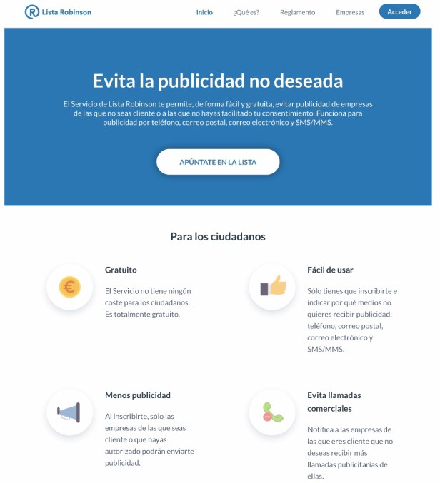 Así que si estas cansado de recibir llamadas en casa a horas intempestivas ofreciéndote productos y servicios que no te interesan… esta es la lista en la que tienes que estar.
