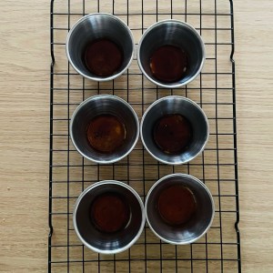 Dejar enfriar unos minutitos y rellenar cada flanera con la mezcla.