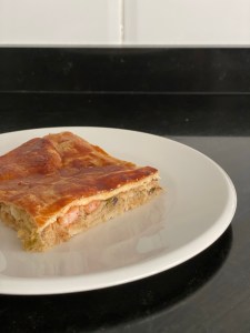 La empanada es uno de mis platos favoritos por todas las veces que me han resuelto una merienda, una cena o simplemente como tentempié. Esta de bacalao, la hice el otro día y fue éxito total. Así que aquí la tenéis.