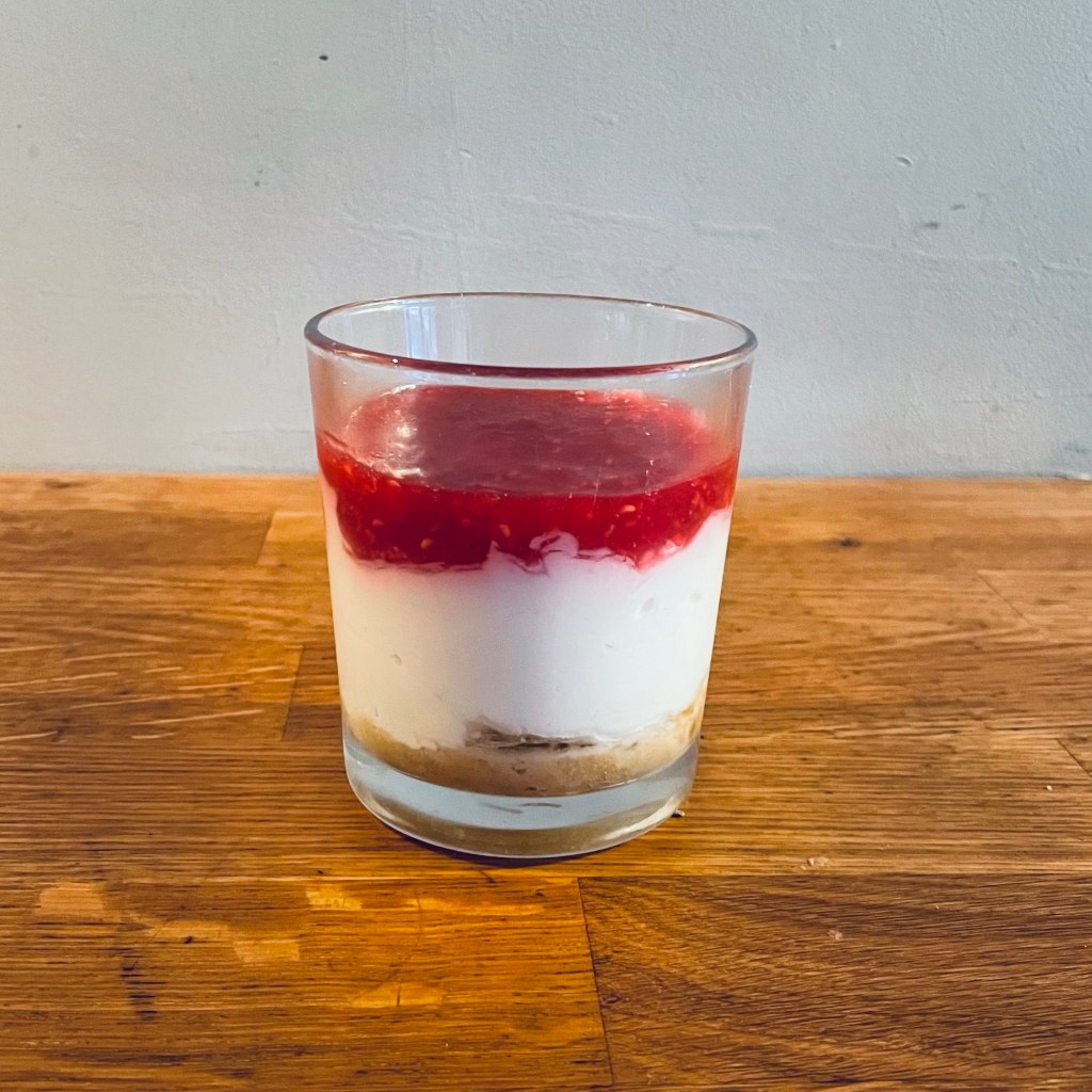 Receta sencilla y rápida compuesta por una base de galleta, una capa de queso crema con yogur y una capa de fruta. No necesita horno y se puede hacer con antelación lo que hace de esta receta, una deliciosa composición express perfecta para cualquier ocasión.