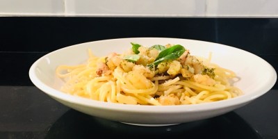 Espaguetis con gambas al ajillo