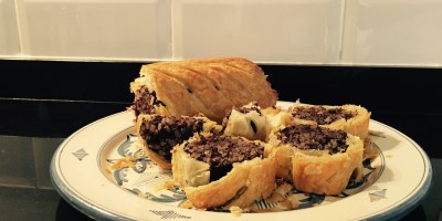 Aperitivo: hojaldre de morcilla de Burgos
